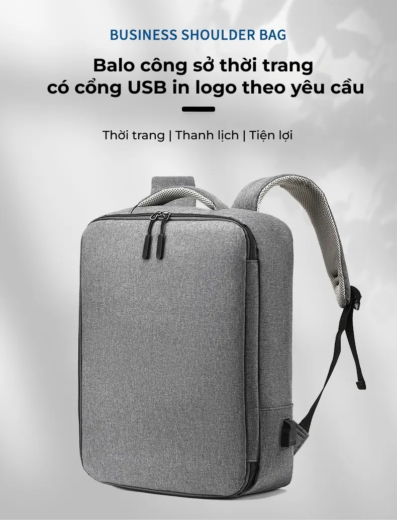 Balo công sở thời trang có cổng USB in logo theo yêu cầu