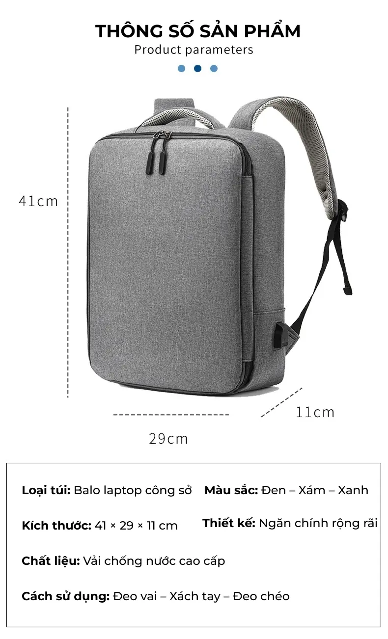 Balo công sở thời trang có cổng USB là lựa chọn lý tưởng cho doanh nghiệp đang tìm kiếm sản phẩm quà tặng in logo cao cấp, gọn nhẹ và tiện dụng. Thiết kế hiện đại, tối giản, phù hợp cho nhân viên văn phòng, học sinh – sinh viên và khách hàng doanh nghiệp.