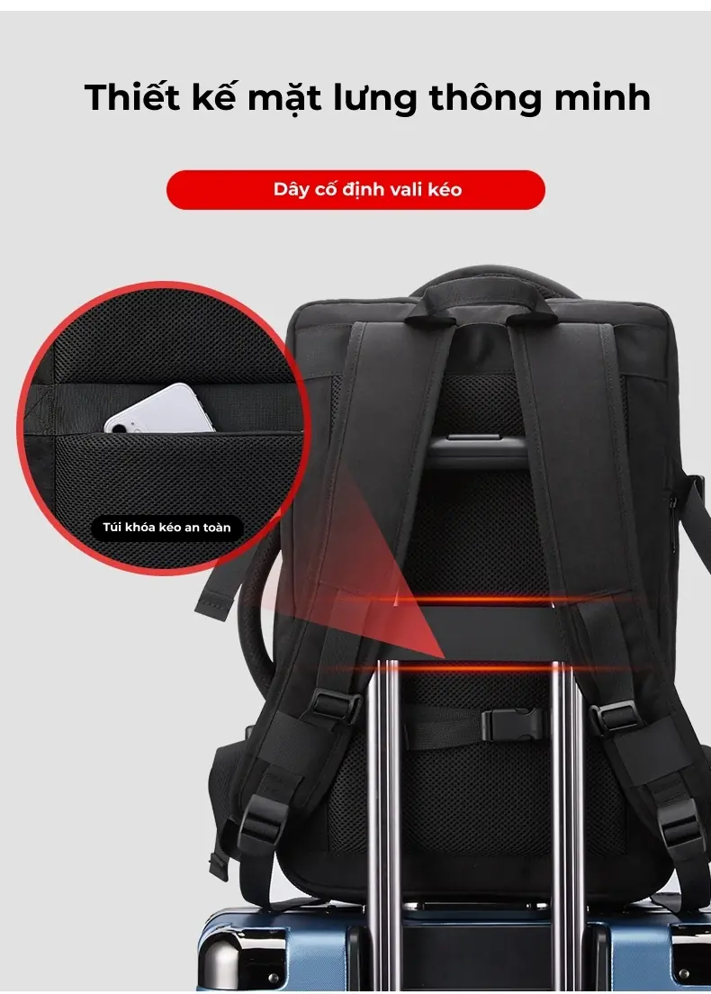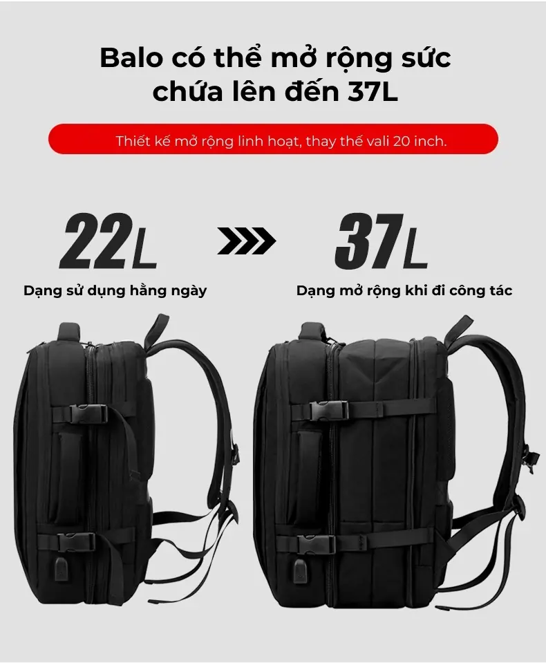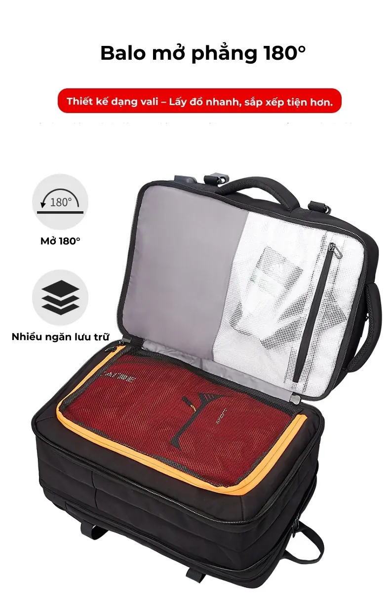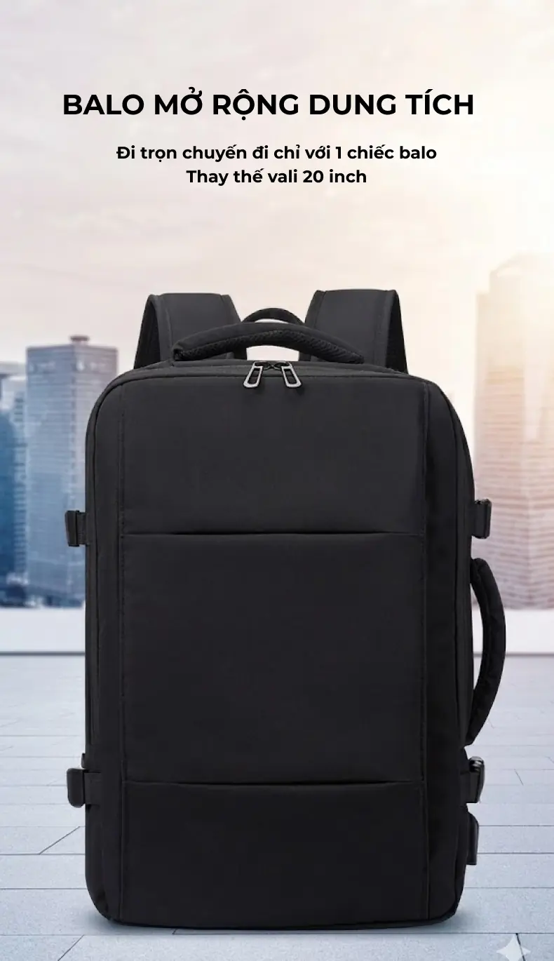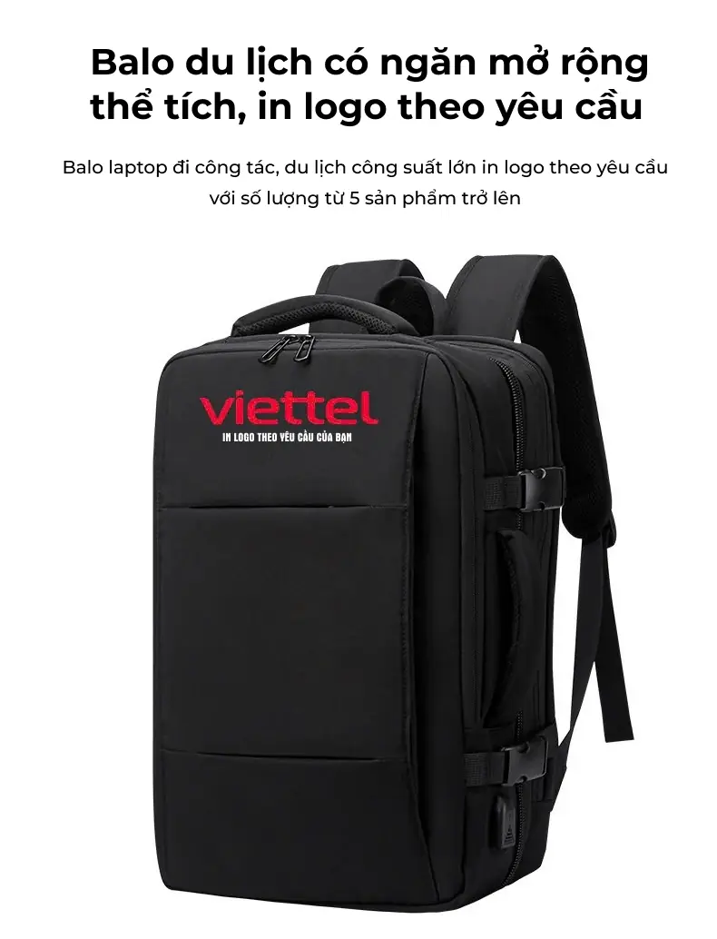 Balo du lịch có ngăn mở rộng thể tích, in logo theo yêu cầu