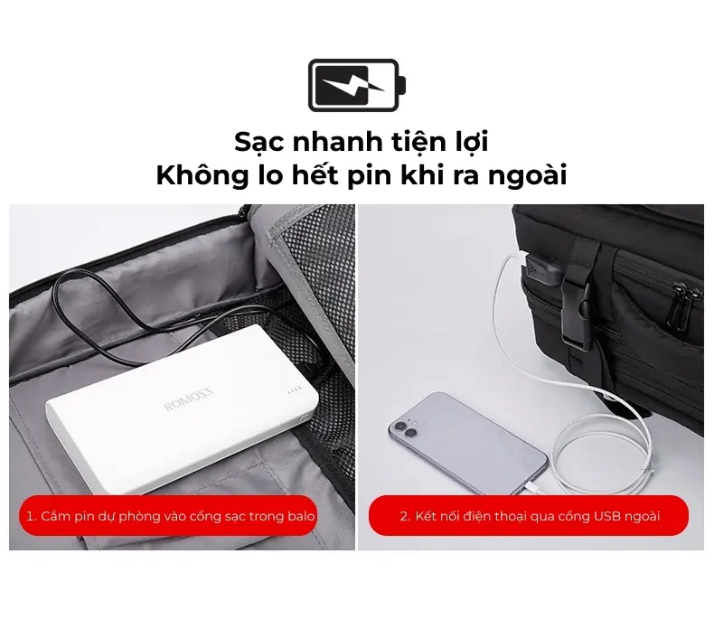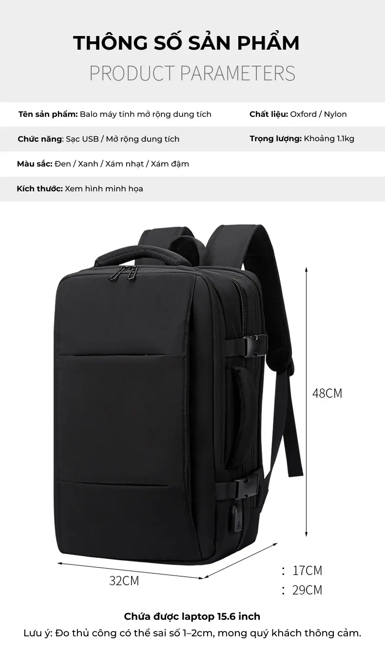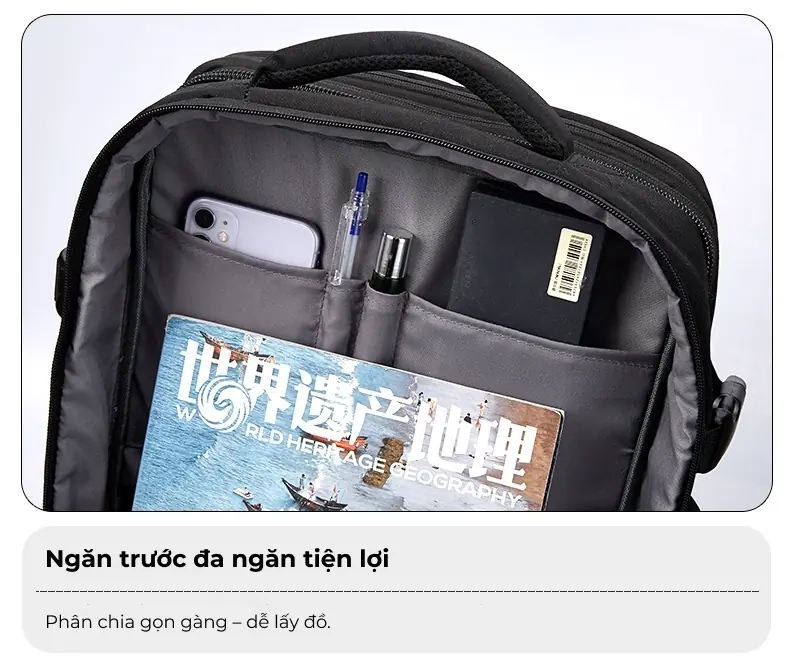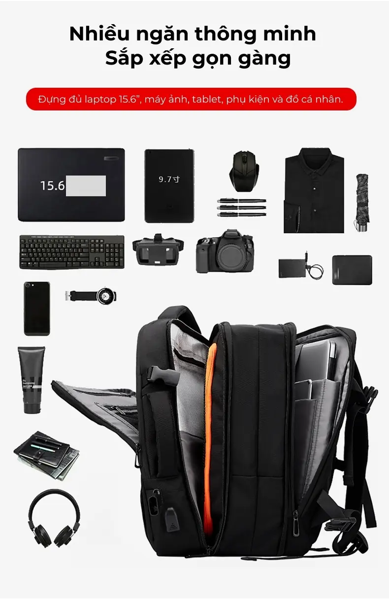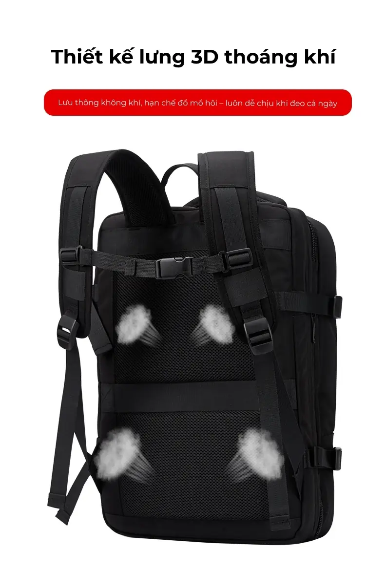 Balo du lịch có ngăn mở rộng thể tích, in logo theo yêu cầu