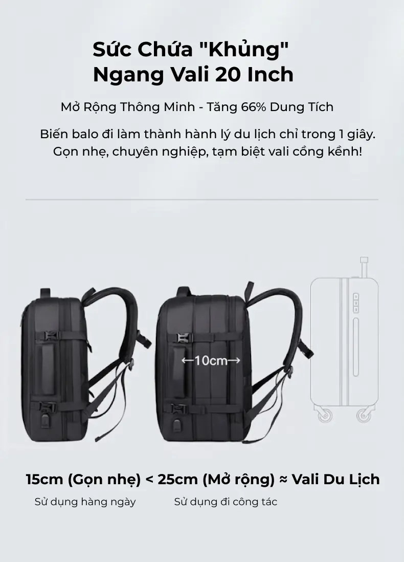 Với trọng lượng nhẹ chỉ 1.05kg nhưng sức chứa lớn, đây là giải pháp “2 trong 1” lý tưởng: vừa là chiếc cặp đi làm lịch lãm, vừa là túi hành lý gọn nhẹ cho những chuyến du lịch ngắn ngày.