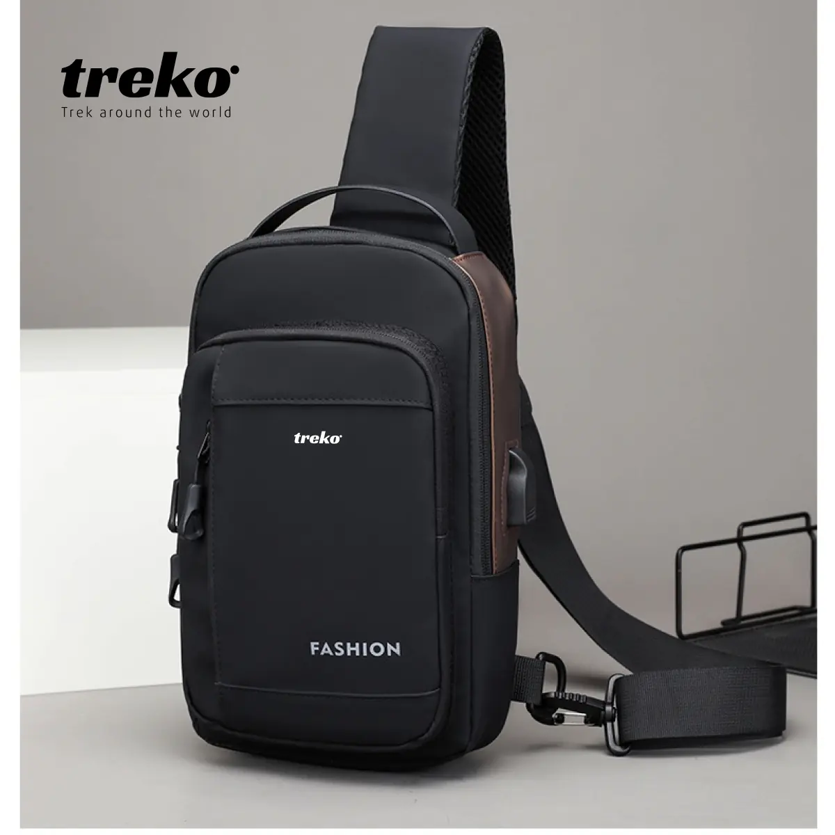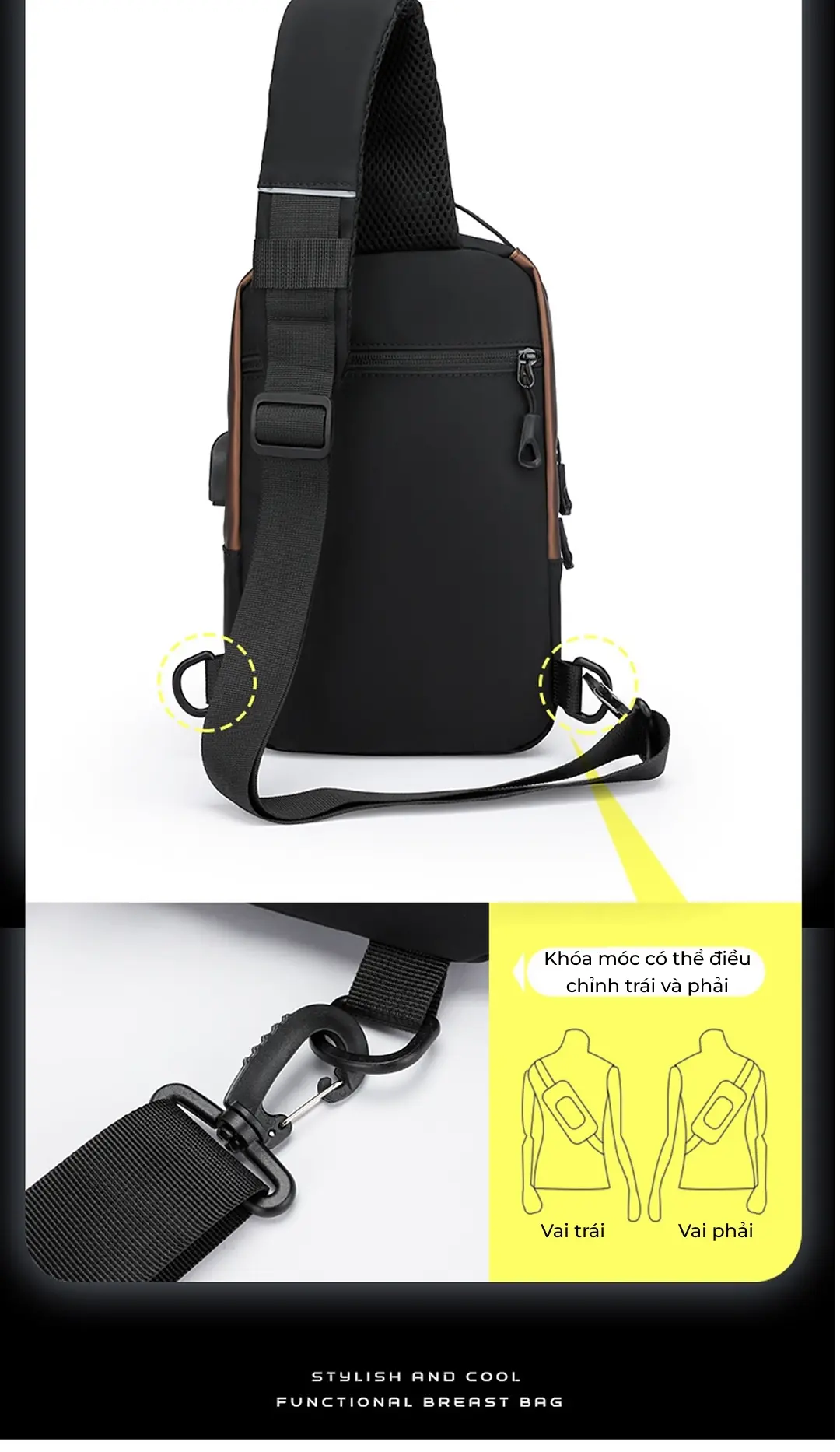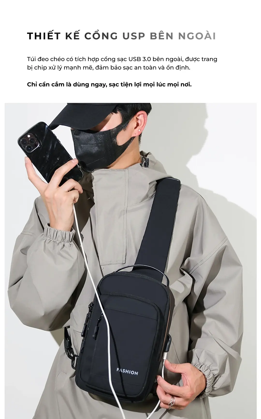 Túi đeo chéo nam phối màu cao cấp có cổng USP in logo theo yêu cầu