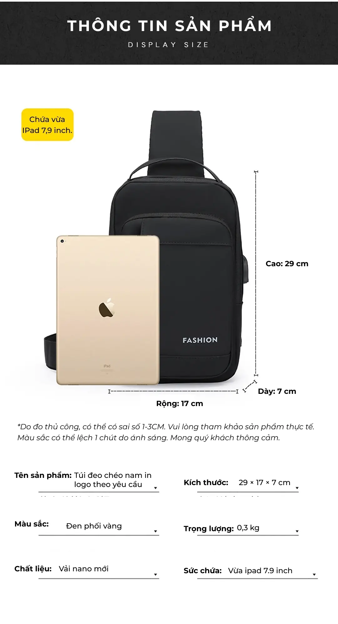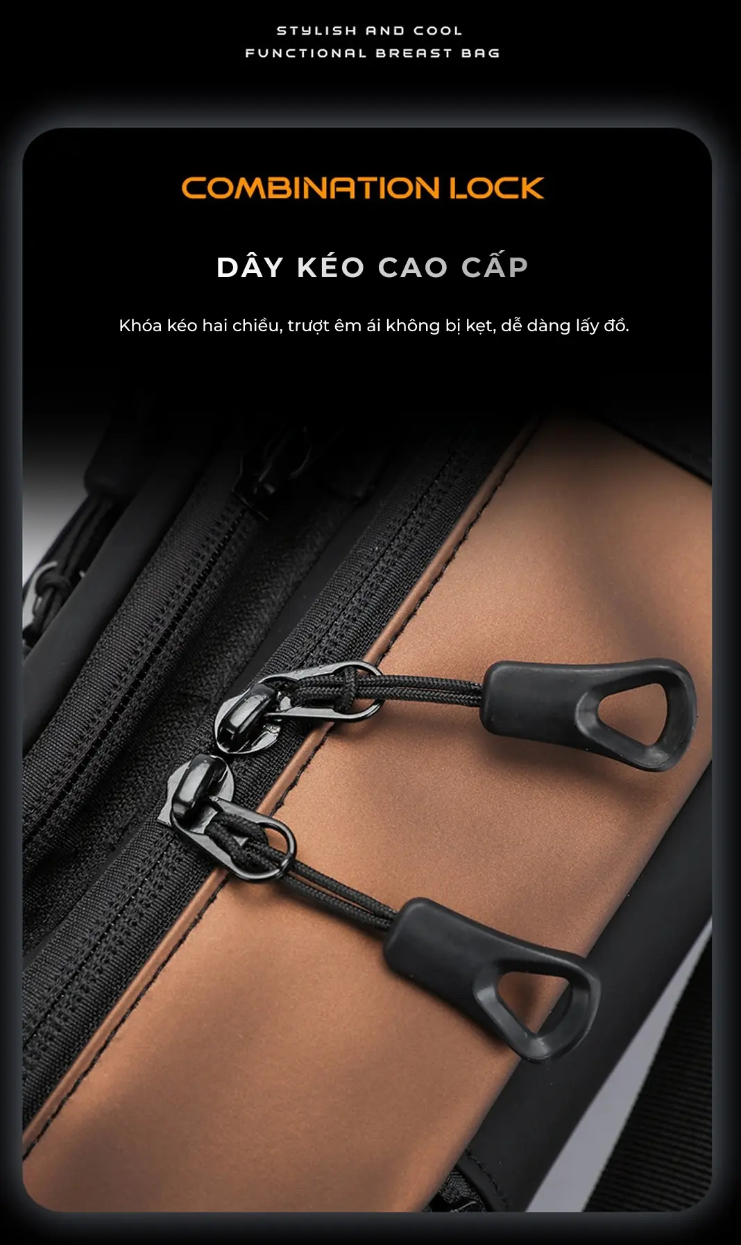 Túi đeo chéo in logo theo yêu cầu phối màu đen – vàng thời thượng là lựa chọn hàng đầu tại ZÓNG để làm quà tặng cho đối tác, nhân viên.
