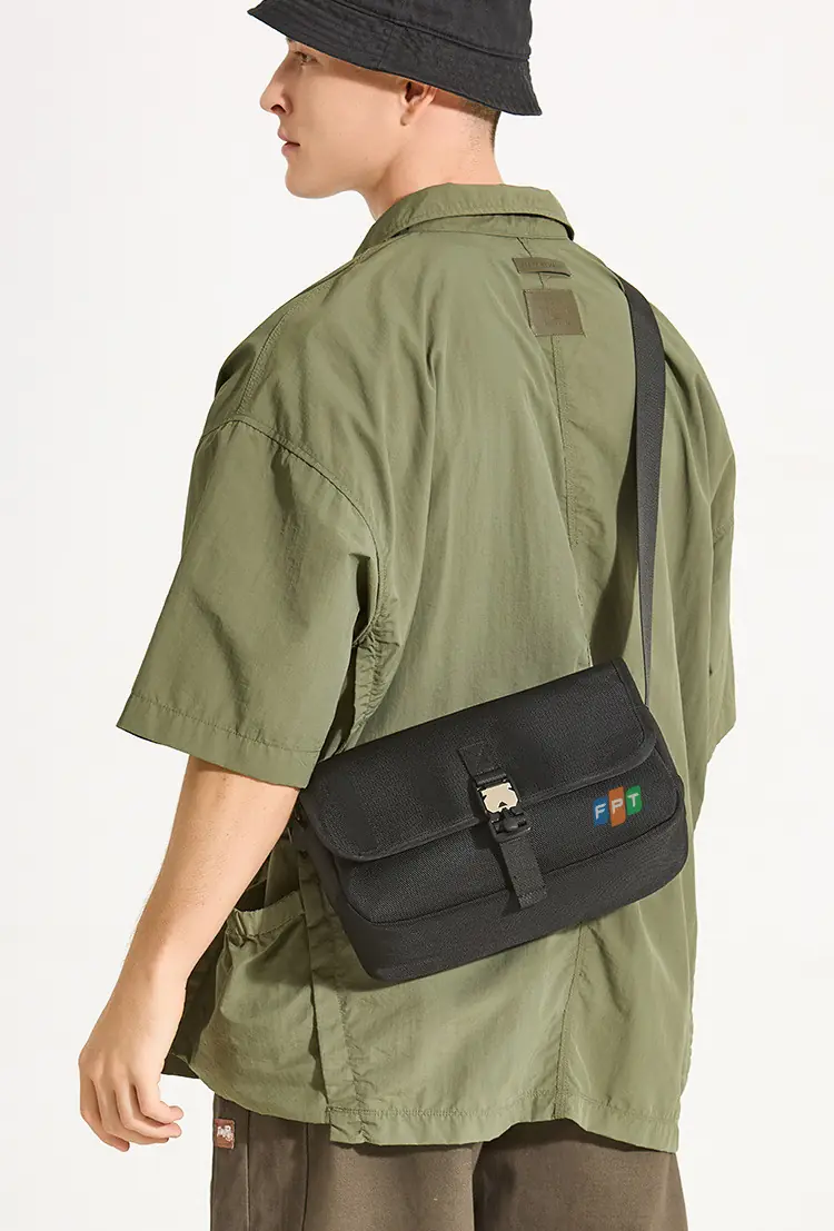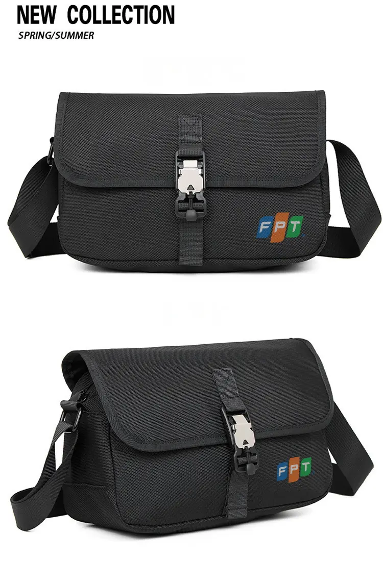 Túi đeo chéo nắp gài thời trang nam in logo theo yêu cầu mới