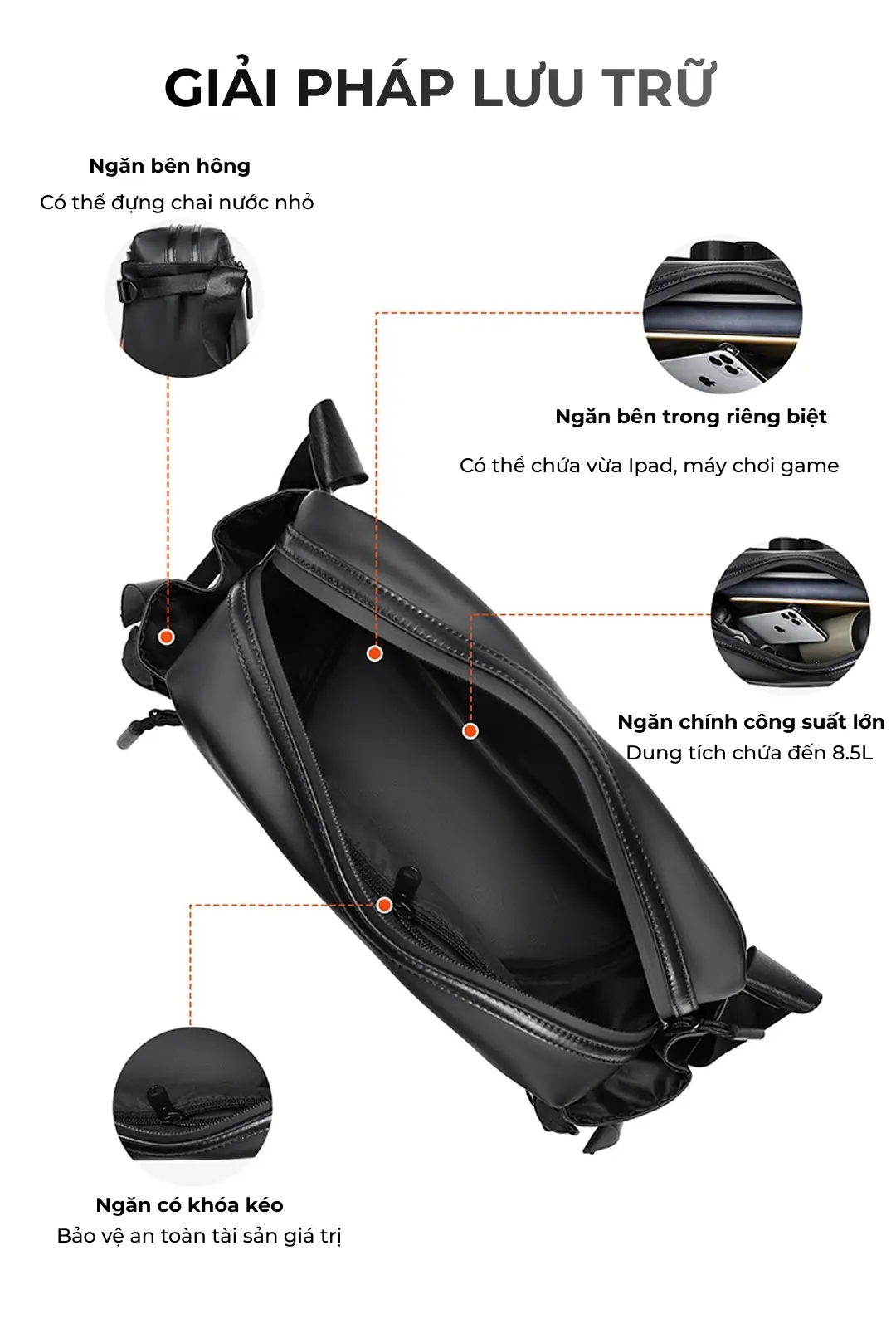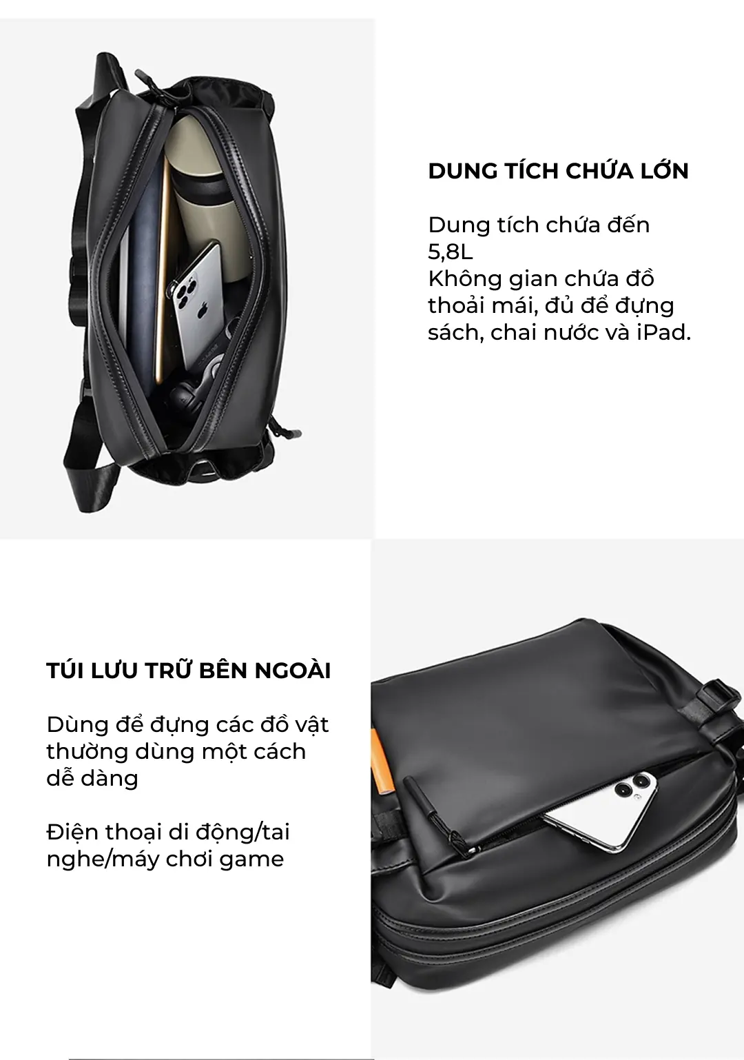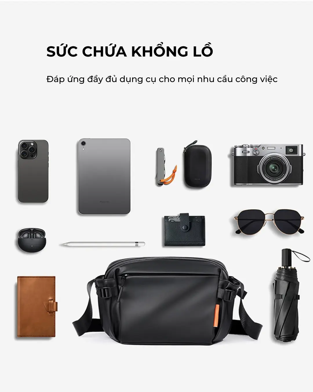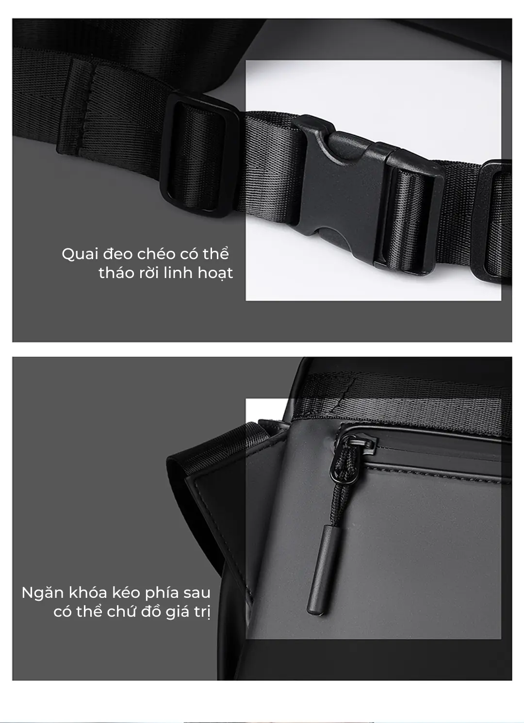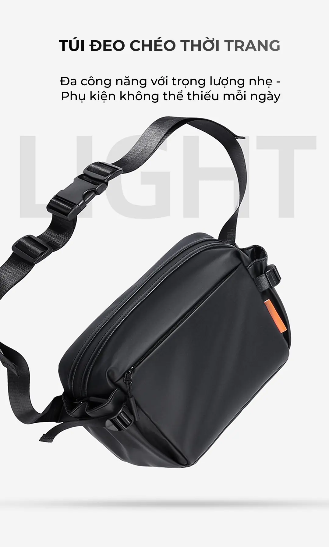 Mẫu túi đeo chéo unisex cao cấp mới tại ZÓNG với thiết kế hiện đại, năng động có kèm dịch vụ túi đeo chéo in logo theo yêu cầu phù hợp với nhu cầu làm quà tặng doanh nghiệp, đối tác.